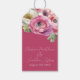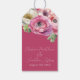 Estas etiquetas para presentes florais românticas apresentam um elegante fundo rosa desbotado com flores de ranunculus brancas e rosadas em aquarela. Um delicado buquê de ranunculus e folhagens é retratado na parte superior. Nomes de amostra de um casal recém-casado e data de casamento são impressos na parte superior. Você pode personalizar as etiquetas para incluir seus próprios nomes ou texto.