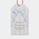 Nossas Etiquetas de Presente para Despedida de Solteira personalizadas Bows & Stripes são o toque final perfeito para qualquer bolsa de favor de chuve de noiva elegante ou de vinho country, apresentando uma encantadora fita azul de aquarela e um fundo de listras verticais suaves para um visual sofisticado. Totalmente personalizáveis com o nome da noiva, destino (como Finger Lakes, NY) e a data da celebração, essas etiquetas resistentes permitem que você agradeça sem esforço aos convidados por celebrarem o próximo casamento.
