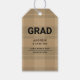 Procurando ideias de graduação? Este conjunto de papelaria de graduação de garoto com um convite especial para festas de formatura fotográficas divertida com um tema de passe de salão e acessórios com um padrão de xadrez tartana sobre o fundo do papel de artesanato são apenas o ingresso para celebrar seu formando legal em estilo. Essas etiquetas de presentes personalizadas de graduação de meninos podem ser facilmente e totalmente personalizadas, imprimíveis ou disponíveis para download instantâneo. Uma etiqueta de presente de formatura de segundo grau para rapazes perfeita que pode ser facilmente integrada noutros temas de festa de formatura. Esquema de cores preto e castanho, fundo de papel de artesanato com padrão de tartã de xadrez.