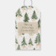 Eleve seus presentes de Natal com esta linda etiqueta de presente de Natal personalizada, apresentando árvores pintadas à mão em aquarela, laços em dourado claro e delicados enfeites de estrela. O elegante fundo neutro combina perfeitamente com qualquer estilo de papel de embrulho.