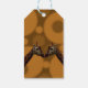 Imagem sobre um fundo circular marrom são duas Girafas idênticas