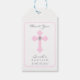 Personalize esta elegante etiqueta batismo/batizante para uma menina. Cruzamento rosa de Pastel com diamante falso no meio. Adicione seu texto ou exclua.