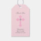 Personalize esta elegante etiqueta batismo/batizante para uma menina. Cruzamento rosa de Pastel com diamante falso no meio. Letras topográficas. A parte de trás da etiqueta tem o nome do bebê cheio opcional. Adicione seu texto ou exclua.