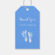 Precioso azul obrigado você para o bebê presente enforcar etiquetas da nova mãe e do bebê com pegadas de bebê recém-nascidos. Personalize este precioso de pegadas recém-nascidas, obrigado de presente para bebês, adicionando uma mensagem especial de obrigados de mamães e bebês.