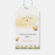 A sweet “What Will Baby Bee?” gift tag designed to match our Bee Gender Reveal collection. Featuring soft watercolor bees and “Thanks for Bee-ing Here,” with customizable names at the bottom. Perfect for favor bags, honey jars, and party gifts.