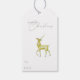Uma rena dourada pintada manualmente em uma elegante etiqueta de presente de natal branca