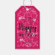 Flores de hibisco branco esboçadas num fundo rosa-quente, estas etiquetas de presentes são perfeitas para dar presente de aniversário. O papel de embrulho na nossa loja.