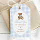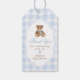 Blue Gingham Elegant Teddy Bear Baby Shower Gift Tags