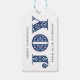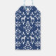 Descubra seus presentes com alegria natalícia neste marinho azul e branco poupando a etiqueta de presente no estilo de arte folclórica escandinava com duas linhas de texto personalizável perfeito para adicionar sua própria mensagem ou seus nomes familiares.