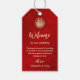 Esta etiqueta de presente de boas-vindas do casamento chinês mostra um símbolo vermelho de felicidade do ouro em um fundo vermelho rubi brilhante. Personalize as etiquetas com a localização do seu casamento, uma pequena nota de boas-vindas, os seus nomes e a data do casamento. Essas etiquetas são perfeitas para casamentos de destino e bolsas de boas-vindas de hóspedes.