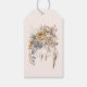 Etiquetas dotadas de um bonito buquê de flores em cores neutras de castanho, pêssego e laranja. Um apanhador de sonhos com penas adiciona um elegante talento místico.