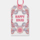 Etiqueta Para Presente Boho Natal Feliz Vermelho e roxo espirais