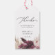 Esse obrigado de grama boho pampas que você prefere... as etiquetas de presentes são perfeitas para um casamento de verão. O design de aquarela floral apresenta uma burgundia boêmica e flores cor-de-rosa pinceladas com ranhuras de erva-pampas neutra e folhas de palma secas de ouro. Personalize as etiquetas com os seus nomes e a data. Mude o texto para qualquer evento: chá de panela, janta de ensaio, chá de fraldas e muito mais!