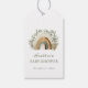 Boho Rainbow Baby Gift Tags. Apresentamos a nossa Encantadora Coleção de Chás de fraldas Boho Rainbow, onde arco-íris, pintados à mão, de cor branca, em tons sujos de verde-sábio, terracota, e dança bronzeada ao lado de botânicos de eucalipto de tendências em um pano de fundo bege sereno, com um padrão complementar no reverso em senso profundo. Abraçando uma estética cômica rústica e boêmica, esta coleção engloba tudo o que você precisa para uma celebração memorável, desde convites refinados e cartões de cerimônia a um encantador sinal de boas-vindas, deliciosos etiquetas de presentes, bolsas de favorecimento e até mesmo coordenação de pratos de papel, copos e guardanapos. Deixe esta coleção dar a palco de uma reunião alegre e na moda para celebrar a chegada iminente da sua pequena.