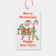 Esta etiqueta festiva de presente de Natal traz uma bela imagem de vintage de um desenho animado que o Papai Noel vestiu de vermelho, verde e branco, e segurando uma bengala doce. A imagem é colocada sobre um fundo branco, com seu texto personalizado em vermelho e verde no topo e na parte inferior. A parte traseira da etiqueta tem a mesma imagem de Papais noeis com dois campos para o seu texto personalizado. As crianças vão adorar! Certifique-se de ver o papel de embalagem correspondente em nossa loja.