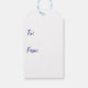 Etiqueta de presente de bumerangue azul. A cor de fundo e o texto podem ser personalizados.