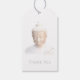 Um obrigado com a etiqueta de presente com uma imagem tranquila e pacífica de um Buda branco. Símbolo de pureza e iluminação.