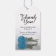 Essas etiquetas de presentes de casamento são projetadas para serem usadas com favores ou presentes para a família, convidados especiais ou membros da sua festa noiva. O design é simples, mas elegante, com um solteiro azul-céu, turquesa ou rosa de cor azul-azure refletindo numa piscina de água com ondas e ondulações. A legenda diz: Obrigado por comemorar conosco! Há espaço para seus nomes e a data do casamento.