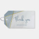 Este simples e moderno obrigado de casamento que você oferece etiquetas de presentes apresenta um tema de cor azul empoeirado com elementos caligráficos, sotaques de quadro de ouro assimétricos e aparência de textura de mármore - por katz_d_zynes