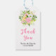 Este obrigado divertido e caprichoso que você usa etiqueta de presente apresenta flores cor d'água rosa, amarelas e brancas com folhagem. O texto combina o script manuscrito e as fontes serif para uma aparência na moda e moderna. Isto é perfeito para um casamento rústico de verão.