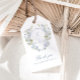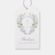 Etiquetas de presentes de casamento elegantes, embelezadas com uma crista de monograma floral azul e azul deslumbrante e caligrafia clássica.