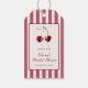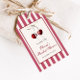Ela é a cereja no topo! Celebre as próximas núpcias da sua noiva favorita com estilo com nossas etiquetas de presente de chá de panela inspiradas no vintage! Este design apresenta belas cerejas em aquarela adornadas com um laço branco em um fundo listrado.