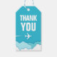 Uma etiqueta de agradecimento vibrante em turquesa e branco personalizada para qualquer pessoa que trabalhe na indústria aeronáutica ou no mundo da aviação. Também pode ser usada como um cartão de agradecimento direcionado aos seus amigos, familiares ou clientes que voaram para vir vê-lo, para fins comerciais, uma reunião de família, um casamento ou qualquer outro grande evento em que embarcaram em um voo, ou até mesmo saltaram em um carro para vê-lo.