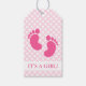 Etiqueta Para Presente Chá de fraldas de Pegadas Bebê Rosa