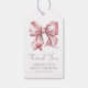 Este obrigado giro e giro que você pendura apresenta um adorável arco cor-de-água rosa para bebê no topo. Abaixo, "Obrigado" é escrito em um roteiro elegante, com o nome da mãe a ser e a data de chá em uma fonte serif clássica na parte inferior. A parte de trás é rosa claro, mas você pode personalizar as cores da fonte e do plano de fundo para corresponder ao seu tema. Use esta etiqueta em favoritos para festas ou salgadinhos para mostrar apreço aos seus convidados por um toque encantador de final. Elegante Arco Cor De Água Rosa, Chá de fraldas Rosa, Agradecemos Que Você Mantenha A Etiqueta Para Favoritos para festas