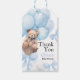 Etiquetas de presente de Chá de fraldas azul com um urso bebê fofo. Podemos Esperar pelo tema do chá de fraldas do urso.