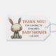 Obrigado personalizado do chá de fraldas de Halloween você tem etiquetas de presentes. Design surpreendente com uma boneca de coelho e cores laranja, preta e branca. Totalmente editável com o nome da futura mãe e a data da festa.