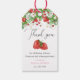 Este design de etiqueta de presente temático de morango apresenta um trecho de morangos, flores brancas e folhagens. É complementado com uma tipografia elegante e feminina em estilo manuscrito e um verso doce de sementes de morango.
