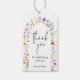 Estas belas etiquetas de lembrança de chá de noiva apresentam flores silvestres delicadas em aquarela ao redor do seu agradecimento e mensagem em letras elegantes. ITENS COINCIDENTES em nossa coleção.