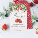Este design de etiqueta de presente temático morango apresenta um trecho de morangos, flores brancas e folhagens. É complementado com uma tipografia elegante e feminina em estilo manuscrito e um verso doce com sementes de morango.
