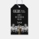 Alegria a 21 anos, obrigados por comemorar comigo e o seu nome nessas etiquetas de presentes de festa mostram o topo de uma garrafa de champanhe e luzes brancas desfocadas em um fundo preto. CORRESPONDENDO a itens na nossa loja.