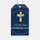 Agradeça a seus entes queridos por comparecerem à Crisma de seu filho, oferecendo-lhes um favor ou pequeno presente com esta etiqueta de agradecimento azul marinho elegante. Esta etiqueta de presente de Crisma de menino apresenta uma bela cruz dourada com uma moldura dourada contra um fundo azul marinho rico. Outros estilos, cores e fontes disponíveis.