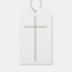 Obrigado de Natal que você está escrito em texto de cinza elegante. Mão pintada elegante cruz prateada e sotaques de cor ouro na frente e no verso. Personalize com o nome do bebê em azul-de-flor-claro e namore em texto preto. Design de arte original © TamiraZDesign.