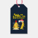 Funny banana with yellow Christmas tree on dark blue background for Christmas holidays