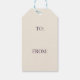 Add some holiday charm for every package. This boutique tag features a sweet dachshund in a Santa hat with a glowing tree, framed in warm ivory with a luxe look that pairs perfectly with the matching napkins and wrap. The back includes TO: and FROM: lines you can personalize—add names, a family surname, or the year for a polished, custom finish. Printed to order and ships worldwide.