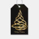 Christmas Shiny Golden Ribbon Tree Sparkle Black Gift Tags. Unique, beautiful, stylish design. Easy to be personalized. Font style, size and colors can be changed. Matching items are available.