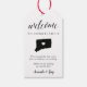 Compartilhe uma mensagem de boas-vindas para os seus convidados de casamento do Connecticut com estas etiquetas rústicas de kraft quic que são perfeitas para anexar às suas bolsas de boas-vindas do casamento. Design apresenta sua mensagem de boas-vindas em letras negras com um mapa de silhueta do estado de Connecticut com um dentro cardíaco.