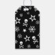 Crânio e bósforos com flocos de neve bonito e estrelas contra fundo preto.