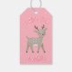 Cute Pink Reindeer Kid`s Name Christmas Gift Tags. Cute reindeer on a pink background with white snowflakes. The tag has a name template - personalize the tag with your name.