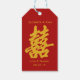 Essas Etiquetas para presentes duplos modernos consistem no personagem "felicidade dupla" em chinês em tons dourados e nomes e datas personalizáveis.