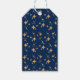 Estrelas de Natal de ouro brilhante num fundo azul-da-noite dá a estas Etiquetas de Presente um olhar festivo de férias. Criado para ir com as Douradas Stars on Dark Blue Background Gift Wrap, Gift Bags e Tissue Paper.