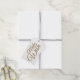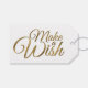 Dourado Tags de presentes de aniversário de um desejo tem letras douradas em um fundo branco.