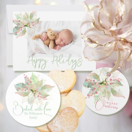 Esta etiqueta de presente apresenta uma poinsettia pastel com bagas cor-de-rosa e realces dourados. É tão elegante e moderno para um Feliz Natal. As costas têm uma poinsettia também com o tipo To e From já. Use uma caneta dourada para personalizar seu presente