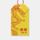 Um conjunto único de etiquetas de presentes adaptado ao seu dragão e casamento temático da Phoenix. Eles apresentam um dragão estilizado na frente contra um pano de fundo dourado junto com um símbolo de gratidão e obrigados. No verso, apresenta símbolos duplos de felicidade sobre os nomes do casal feliz e a data do seu evento especial.