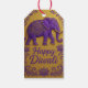 Etiqueta Para Presente Elefante Dourado e roxo circular Happy Diwali
