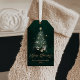 Celebrate the season with timeless elegance using this beautiful gift tag. The design showcases a watercolor Christmas tree with wrapped gifts against a dark green background and accented with shimmering gold details. A perfect finishing touch for your Christmas presents or handmade holiday items.